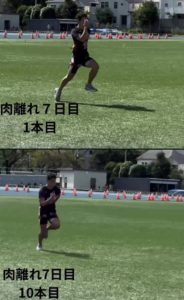 中度の肉離れを起こした選手が、ここまで早く実戦復帰するのは私の指導経験でも初めてのケース。