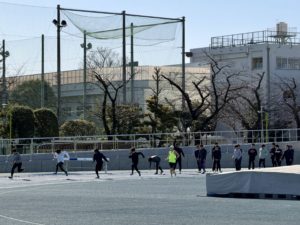 朝は陸上部全体での集合式から始まり、その後、短距離ブロックの練習へ。
